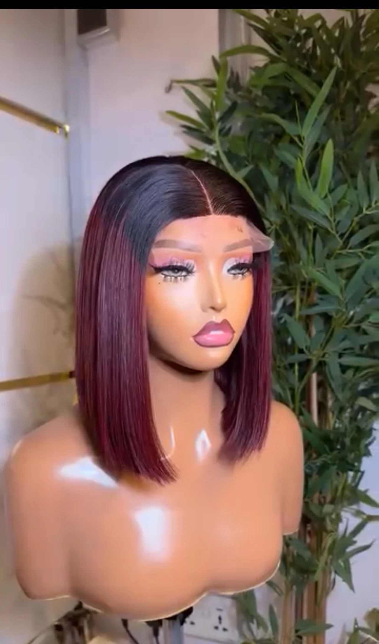 Hair Colour: 2-tone burgundy (factory coloured)